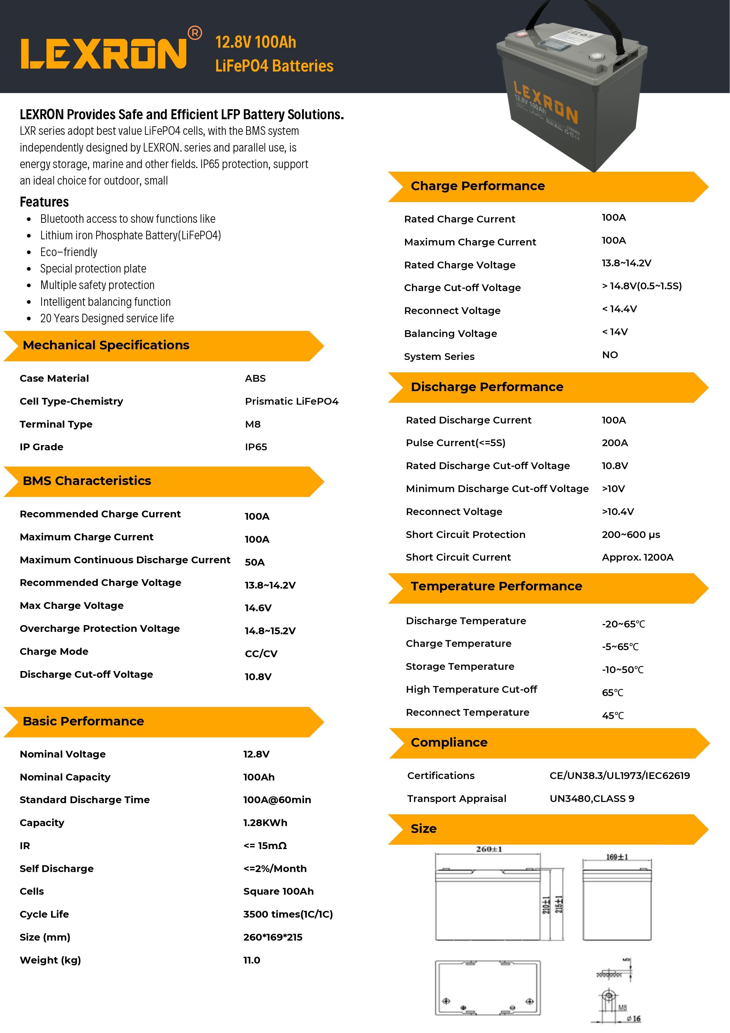 Lexron 12.8V 100AH LiFePO4 Lityum Akü