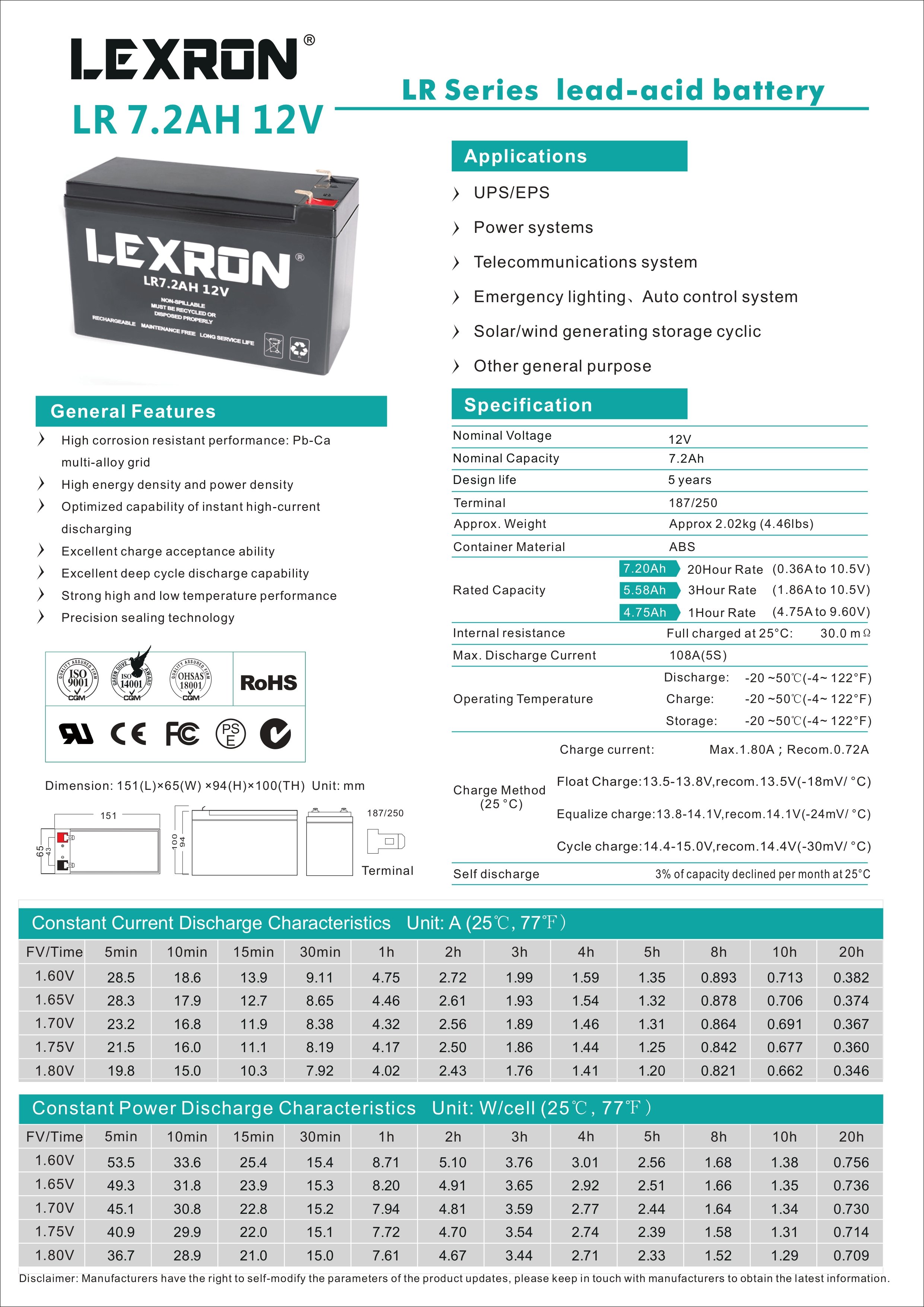 Lexron 12V 7.2Ah Kuru Tip Akü