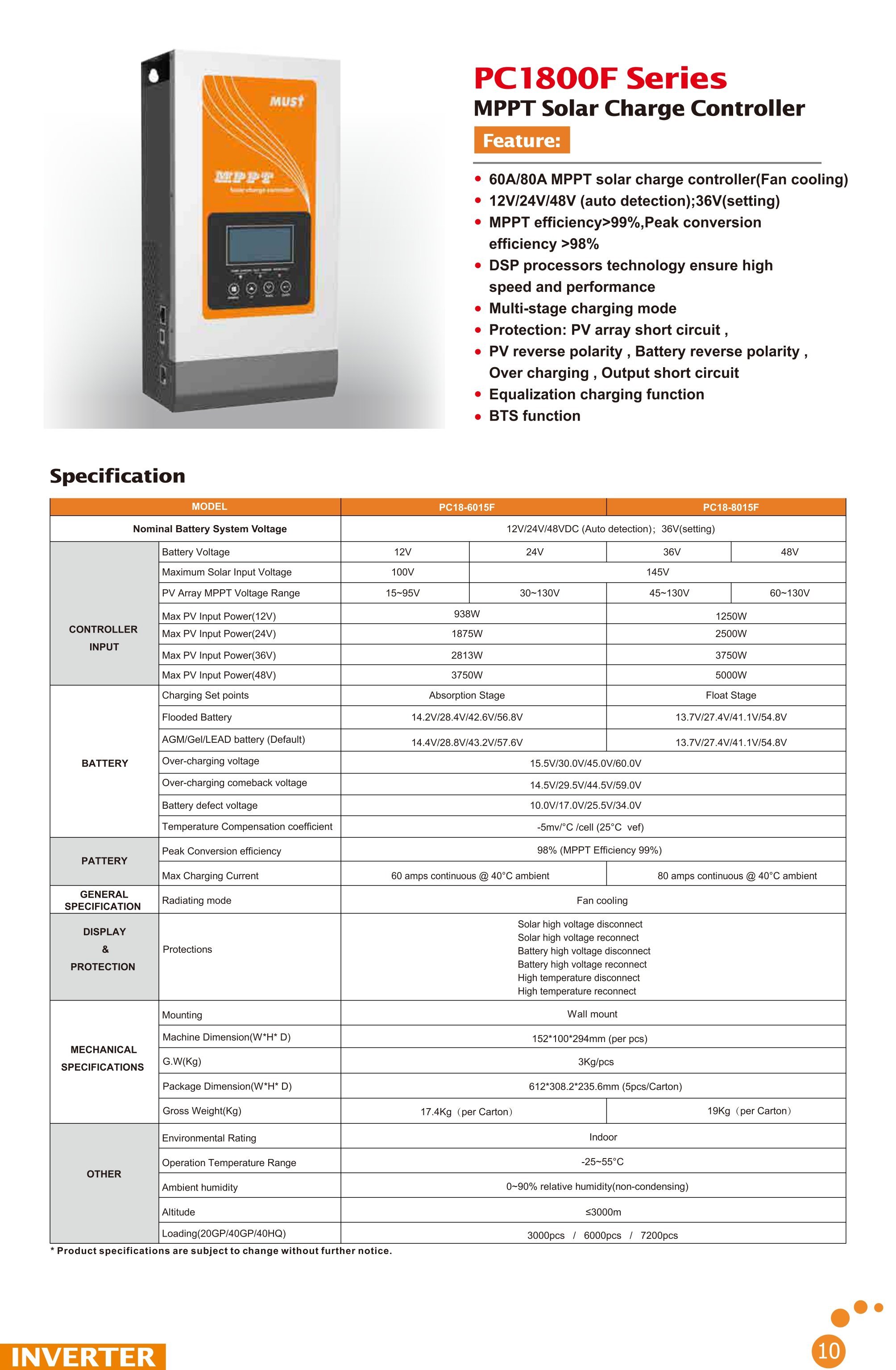 | MPPT Giriş Voltaj Aralığı | 60-130V |