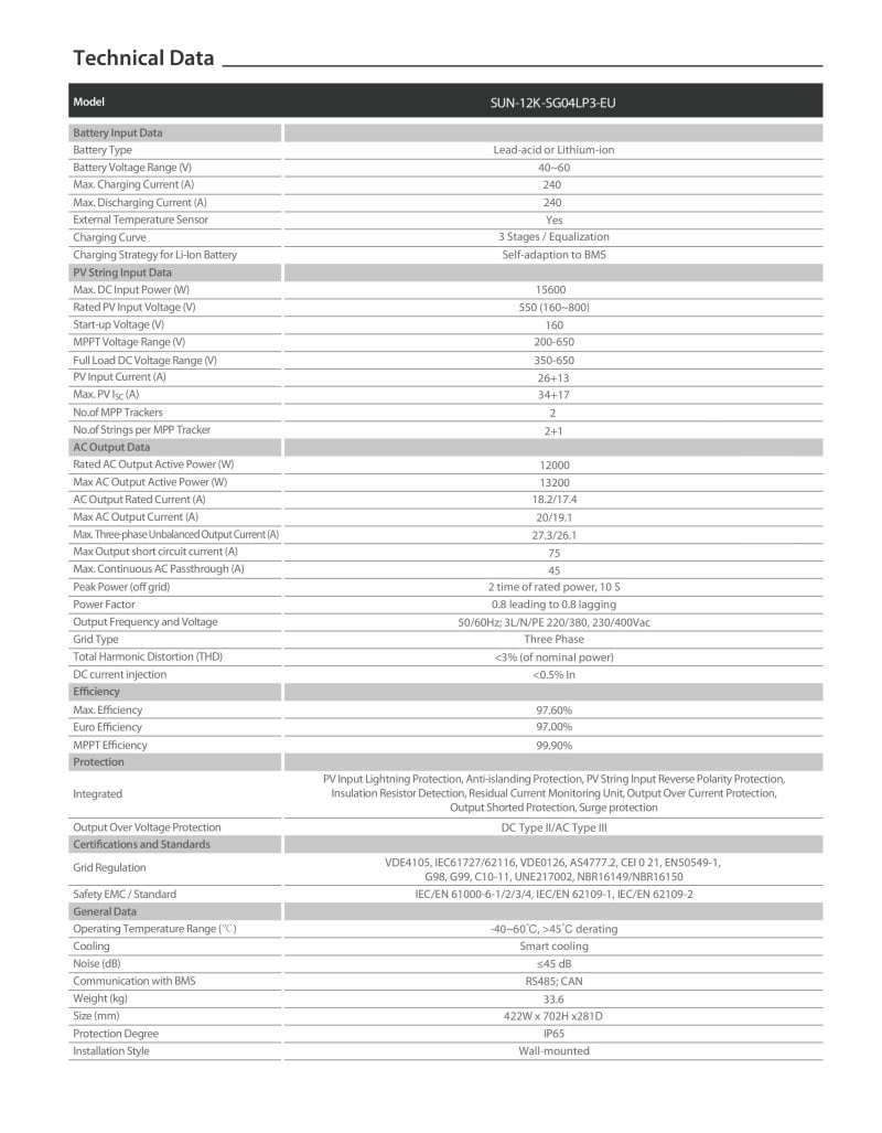 Deye 12kW Hibrit Trifaze On Grid 48V İnverter (LV)