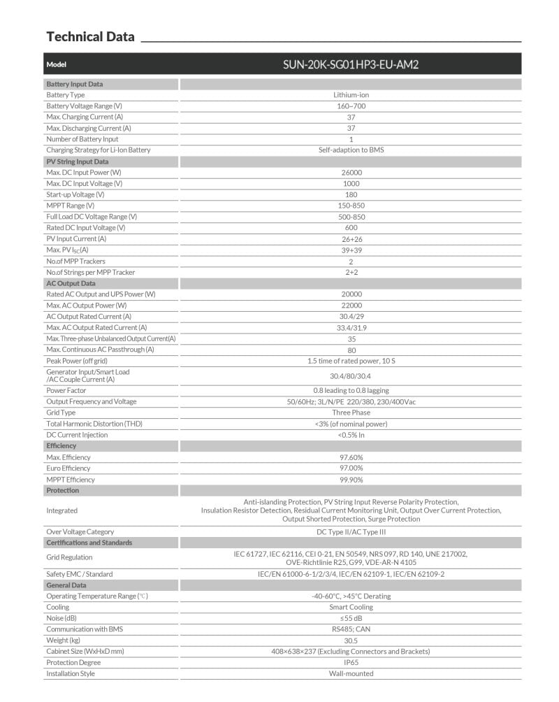 Deye 20kW Hibrit Trifaze İnverter (HV)