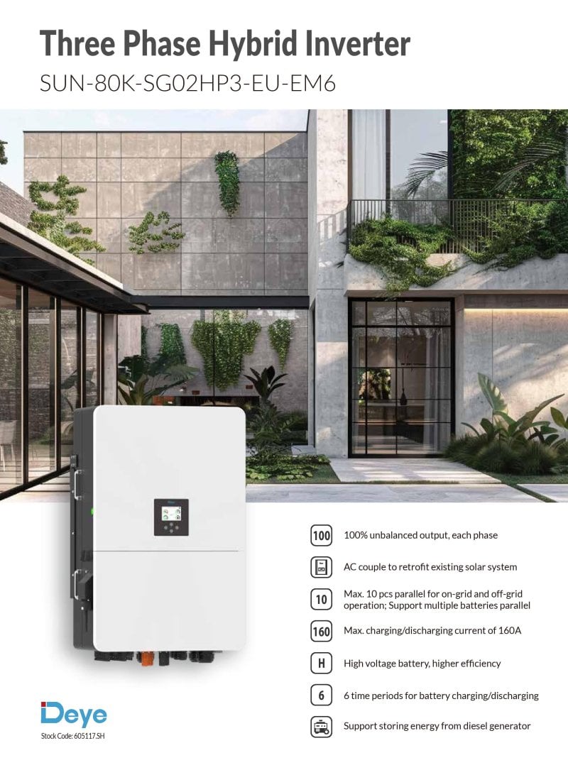 Deye 80kW Hibrit Trifaze İnverter (HV)