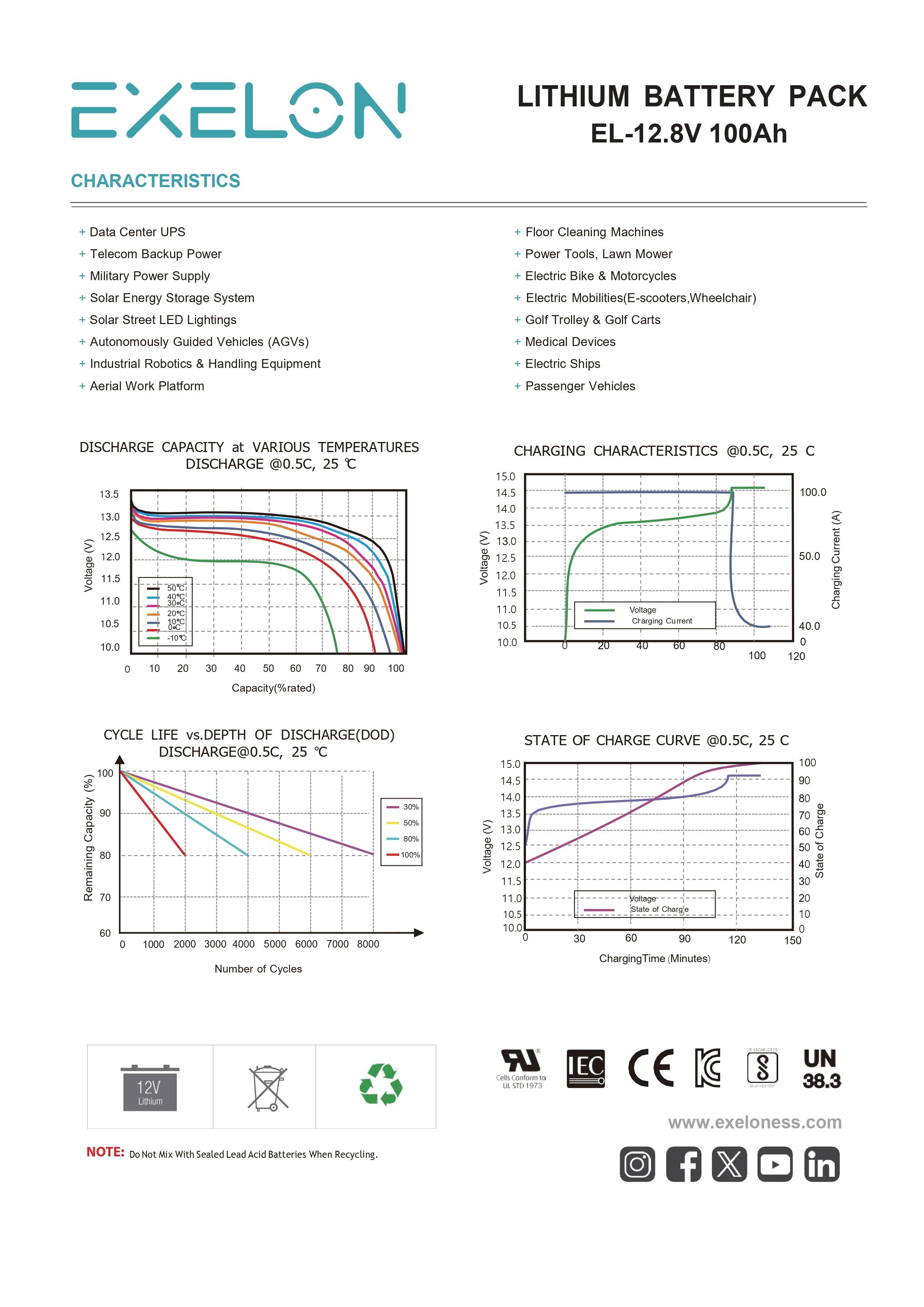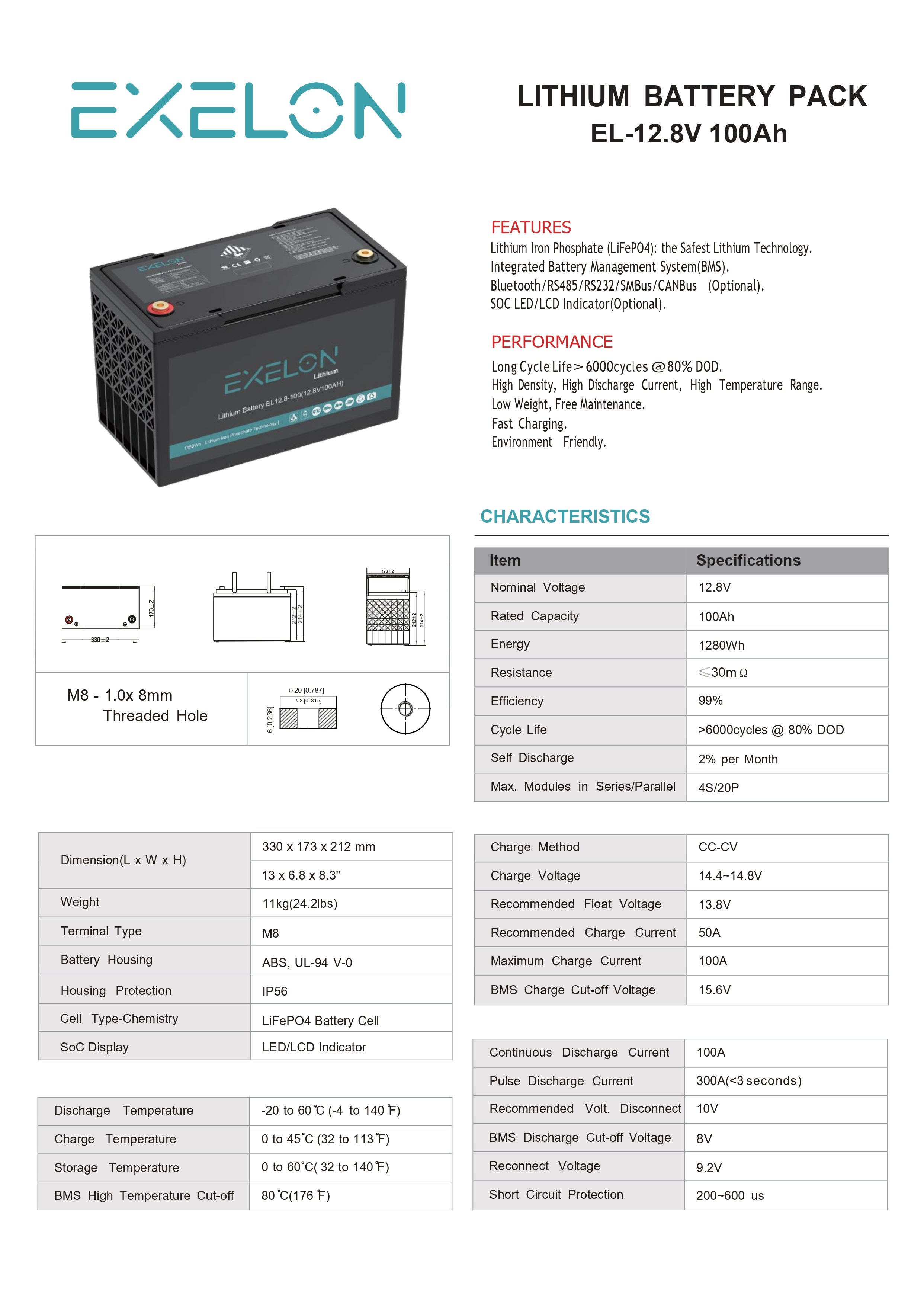 Exelon 12.8V 100Ah Lityum (LiFePO4) Batarya
