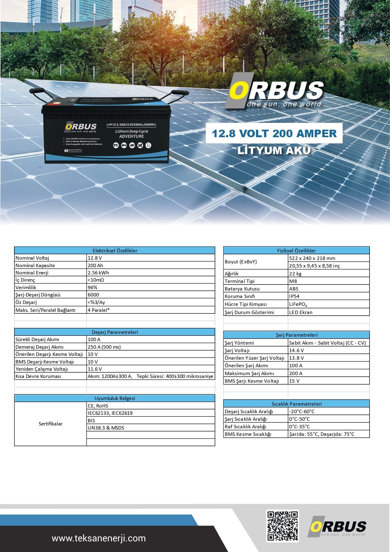 12.8V 200Ah Lityum Akü yüksek oranda şarj ve deşarj verimliliğe sahiptir.