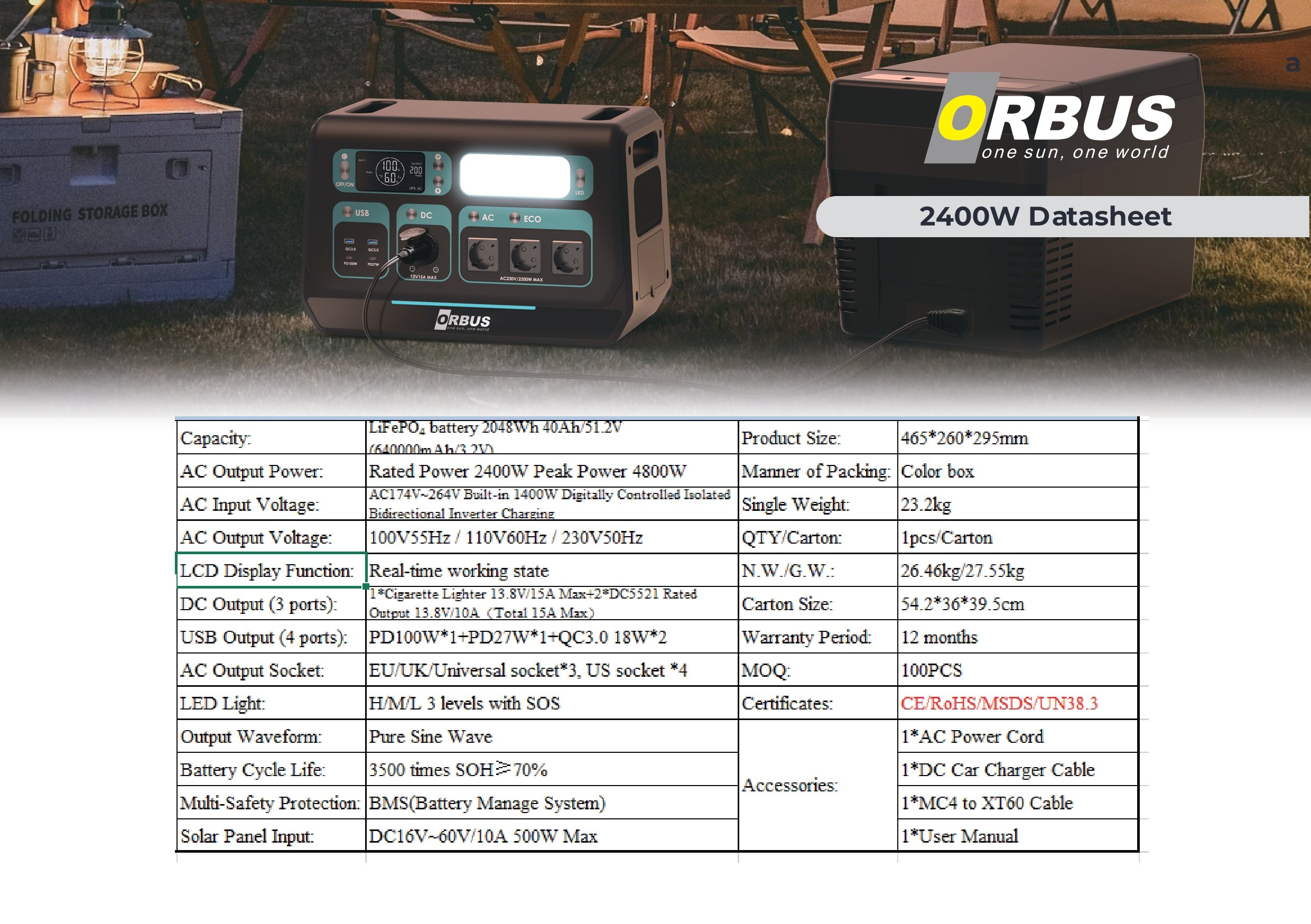 ORBUS 2400W (2048Wh) Power Station Taşınabilir Güç Kaynağı Teknik Özellikleri