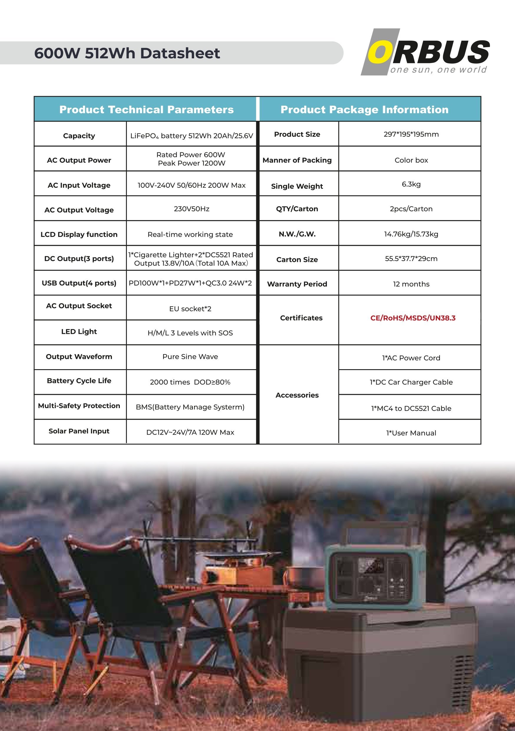 ORBUS 600W(512Wh) Power Station Taşınabilir Güç Kaynağı