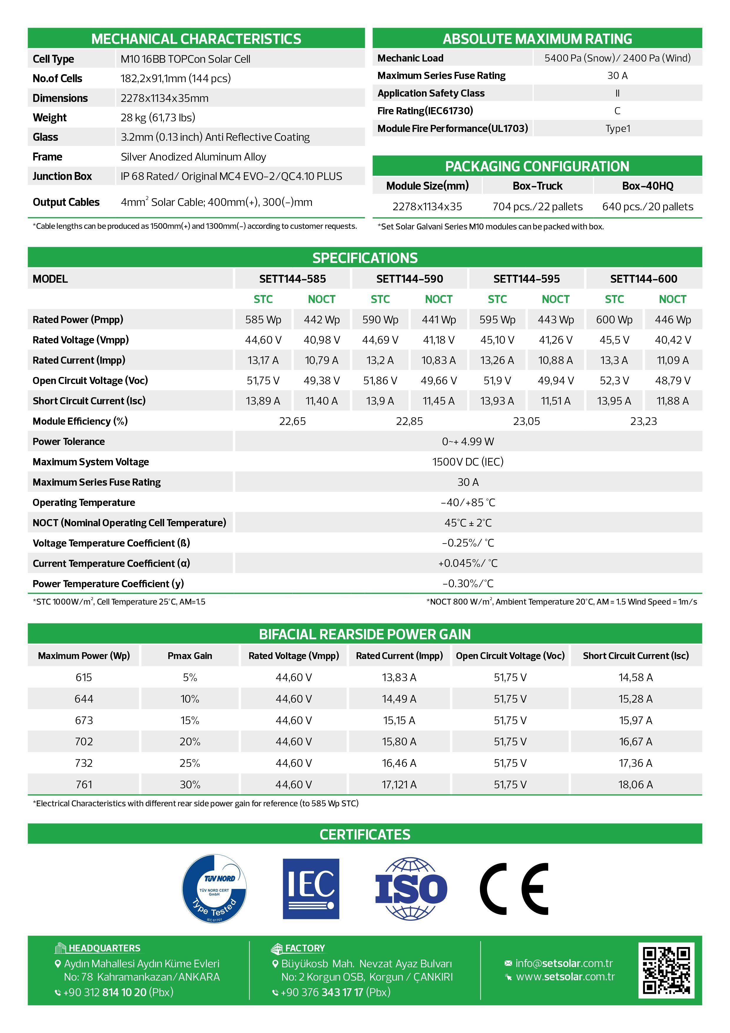 Set Solar 600Wp 144TNB M10 Topcon Güneş Paneli