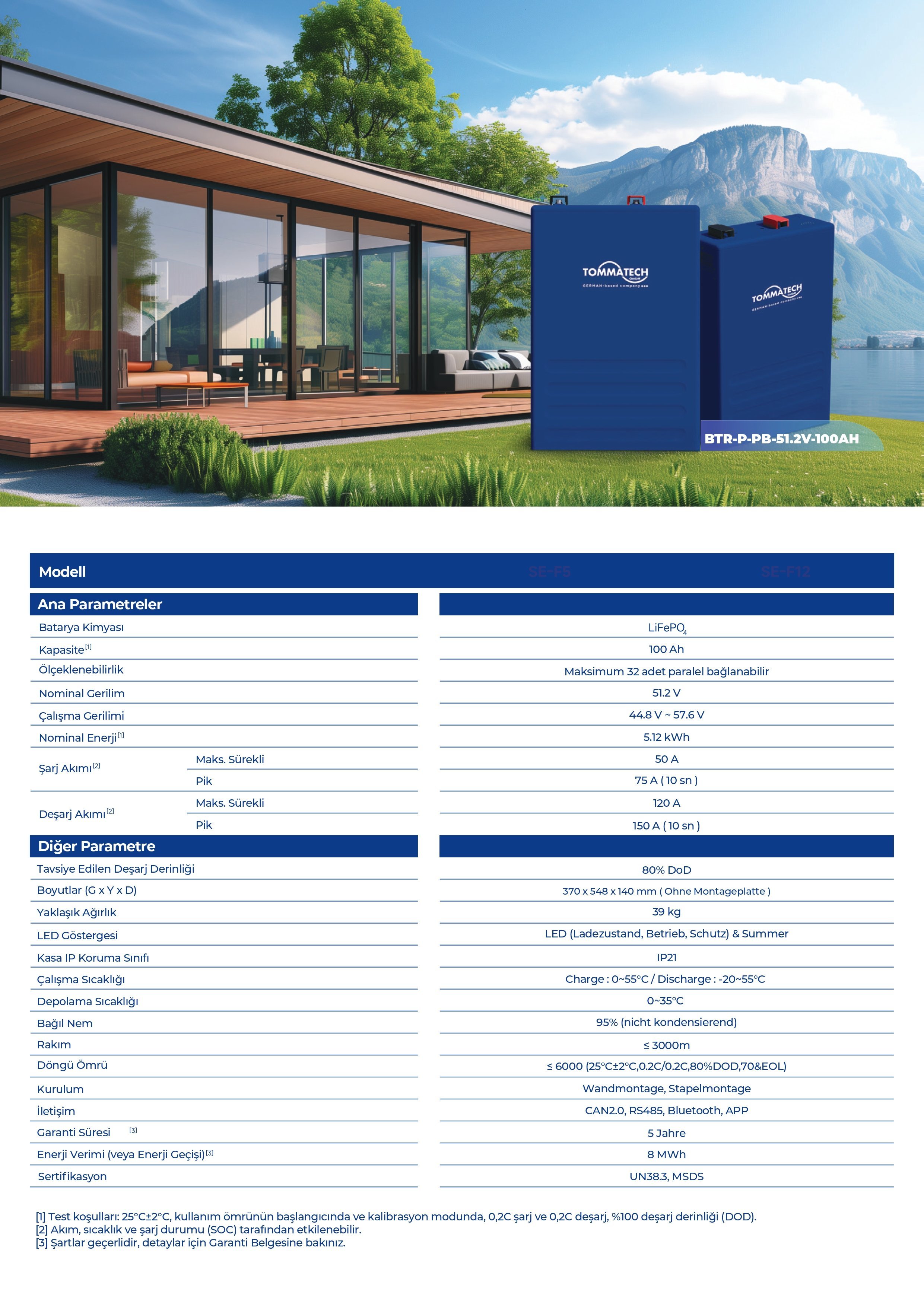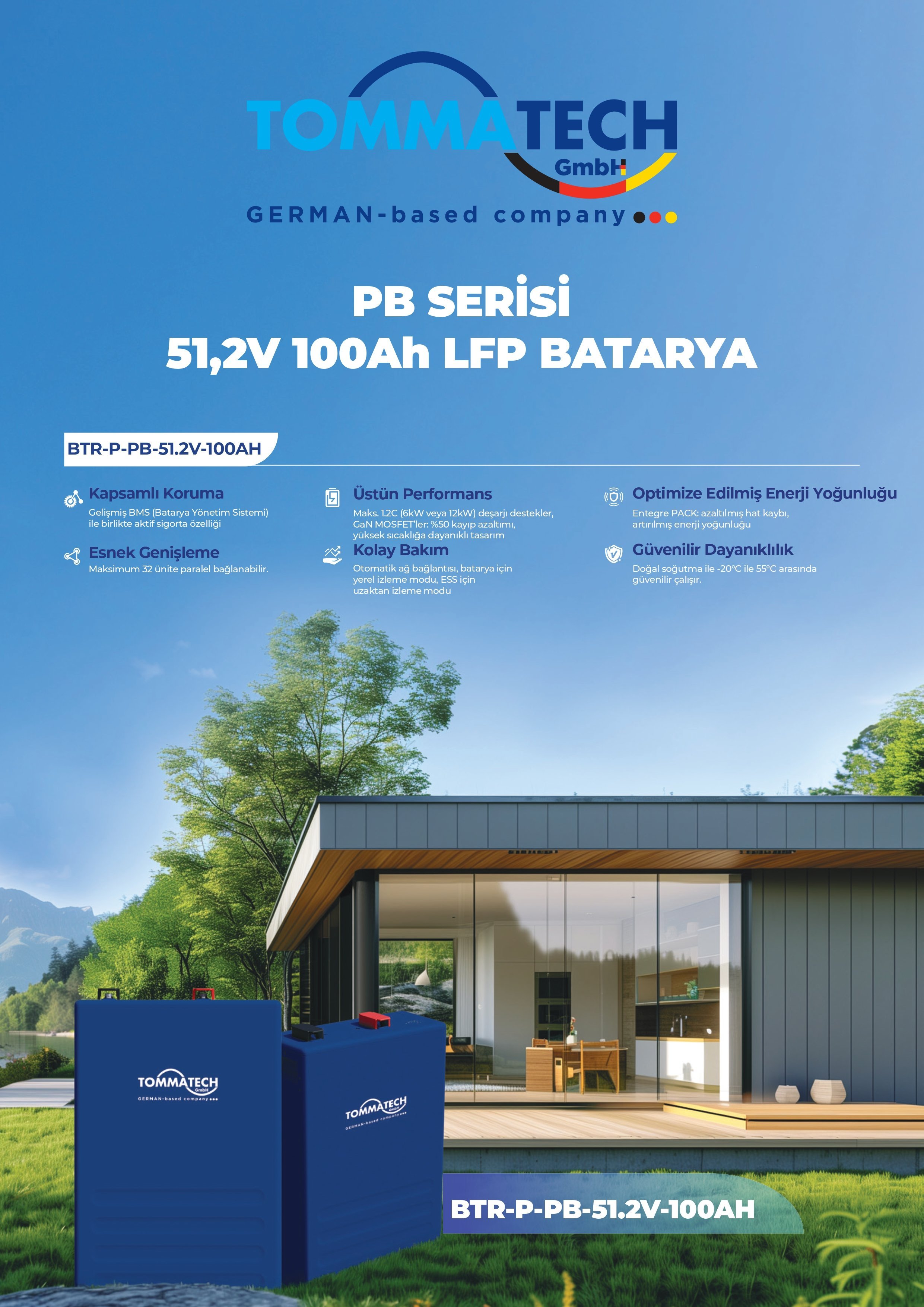 TommaTech 51.2V 100Ah PB Serisi LFP Lityum Batarya
