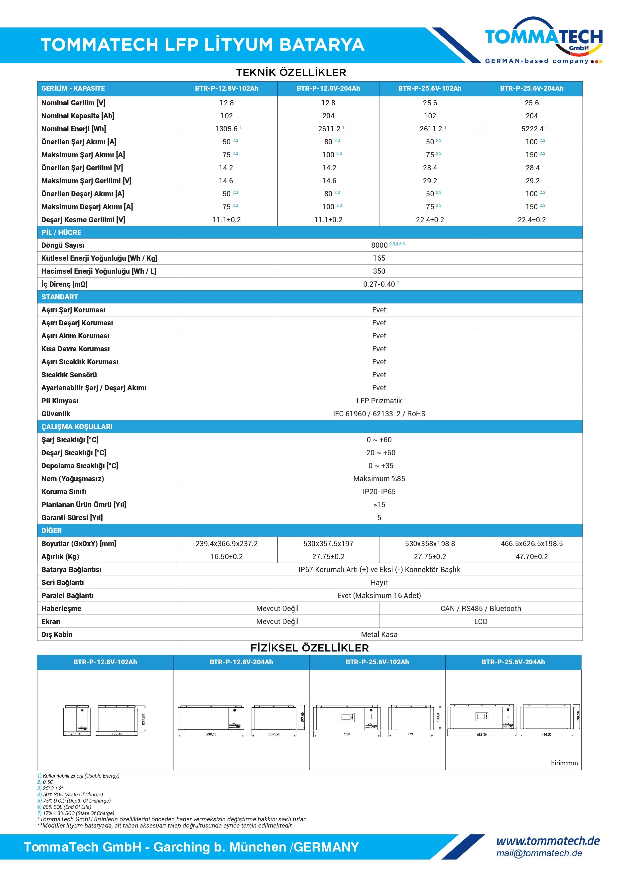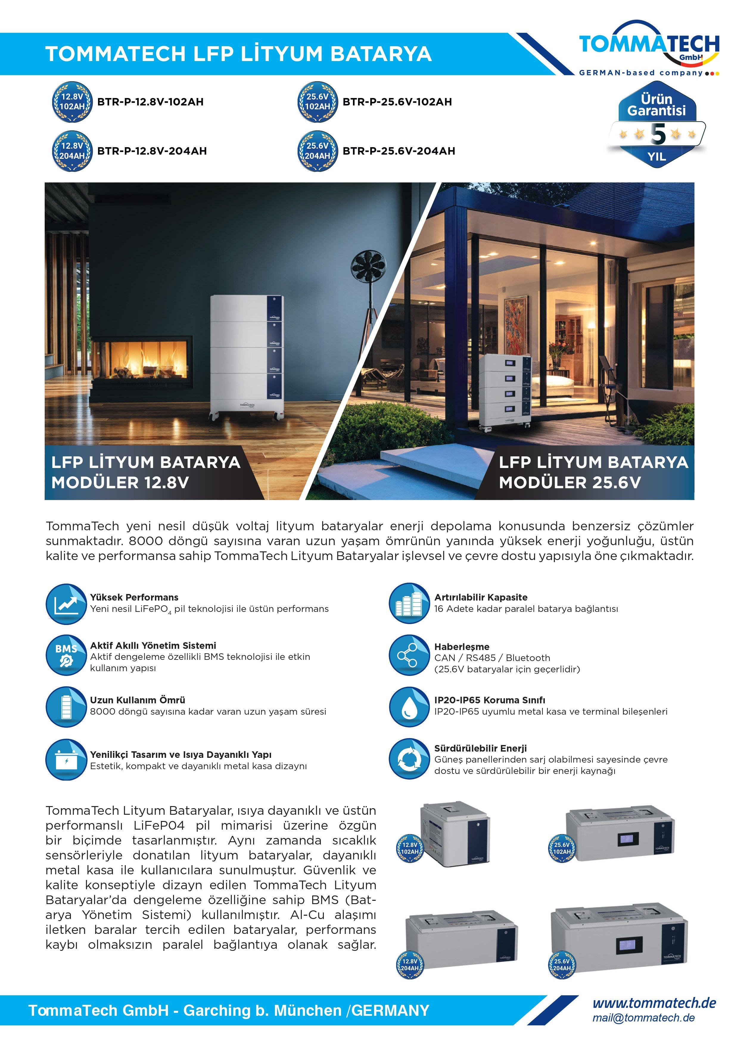 TommaTech Modüler Serisi 25.6V 204AH G2 LFP Lityum Batarya