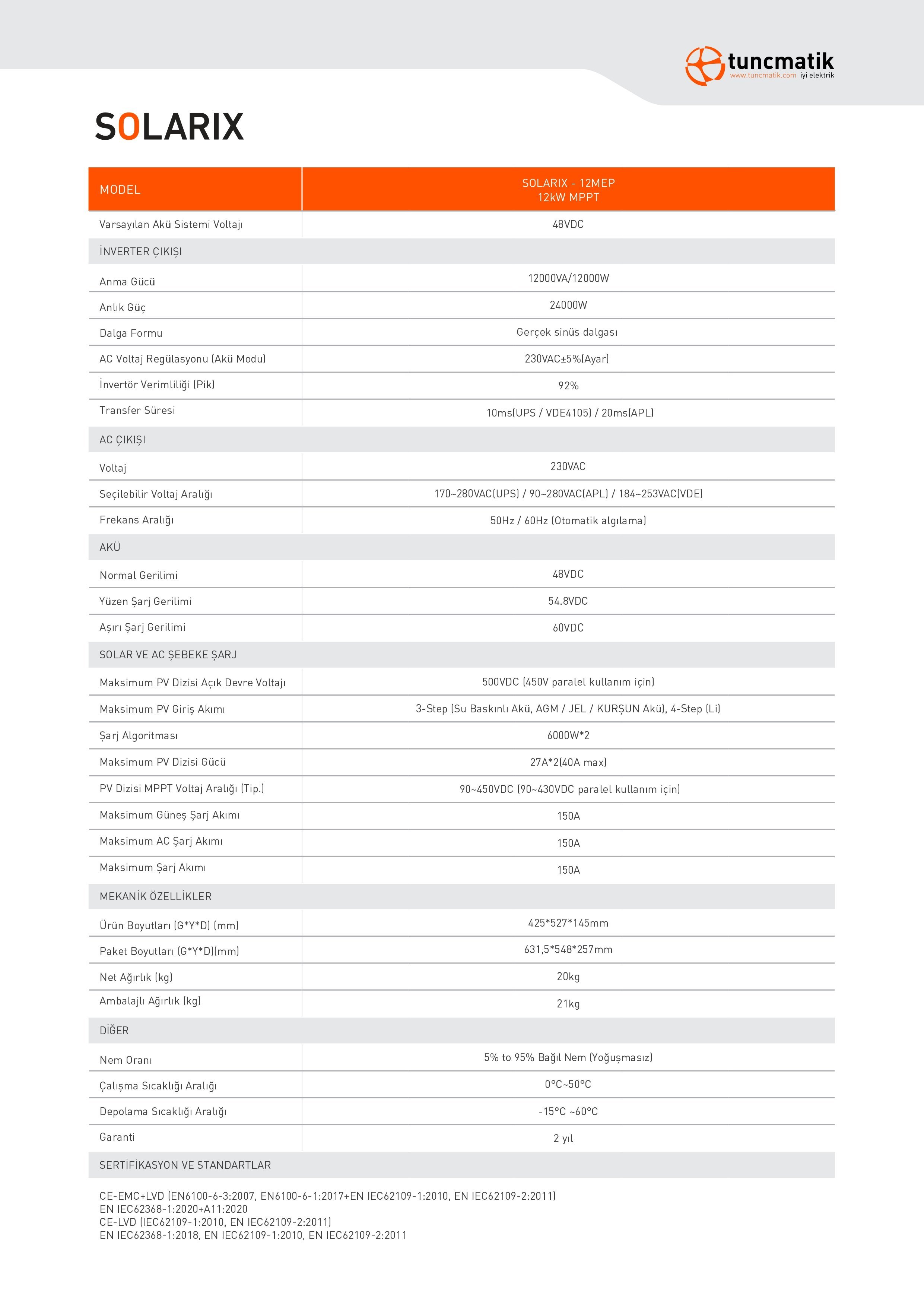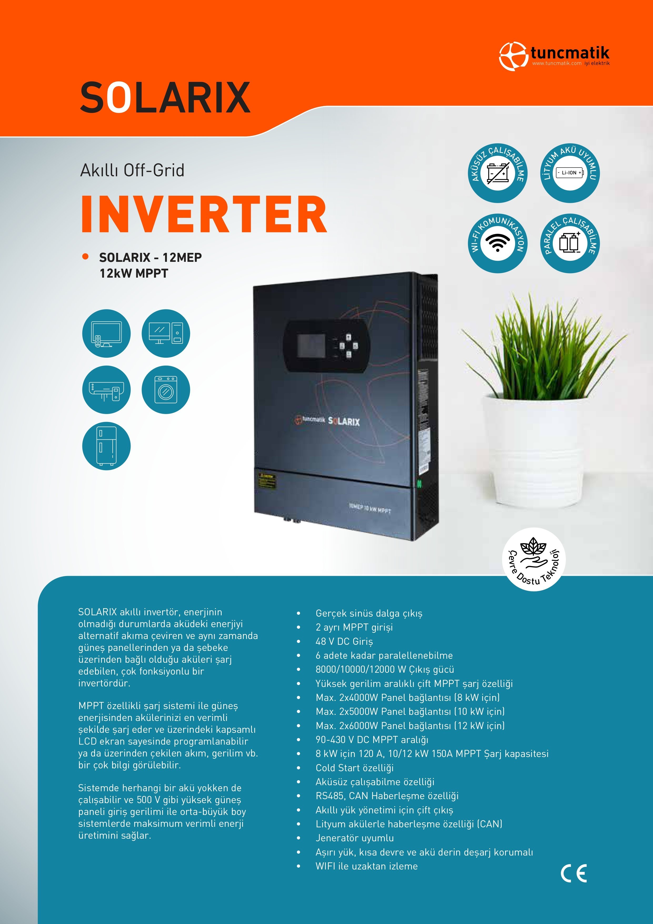 Tunçmatik Solarix 12kW 48V MPPT 120A Off-Grid Akıllı İnverter